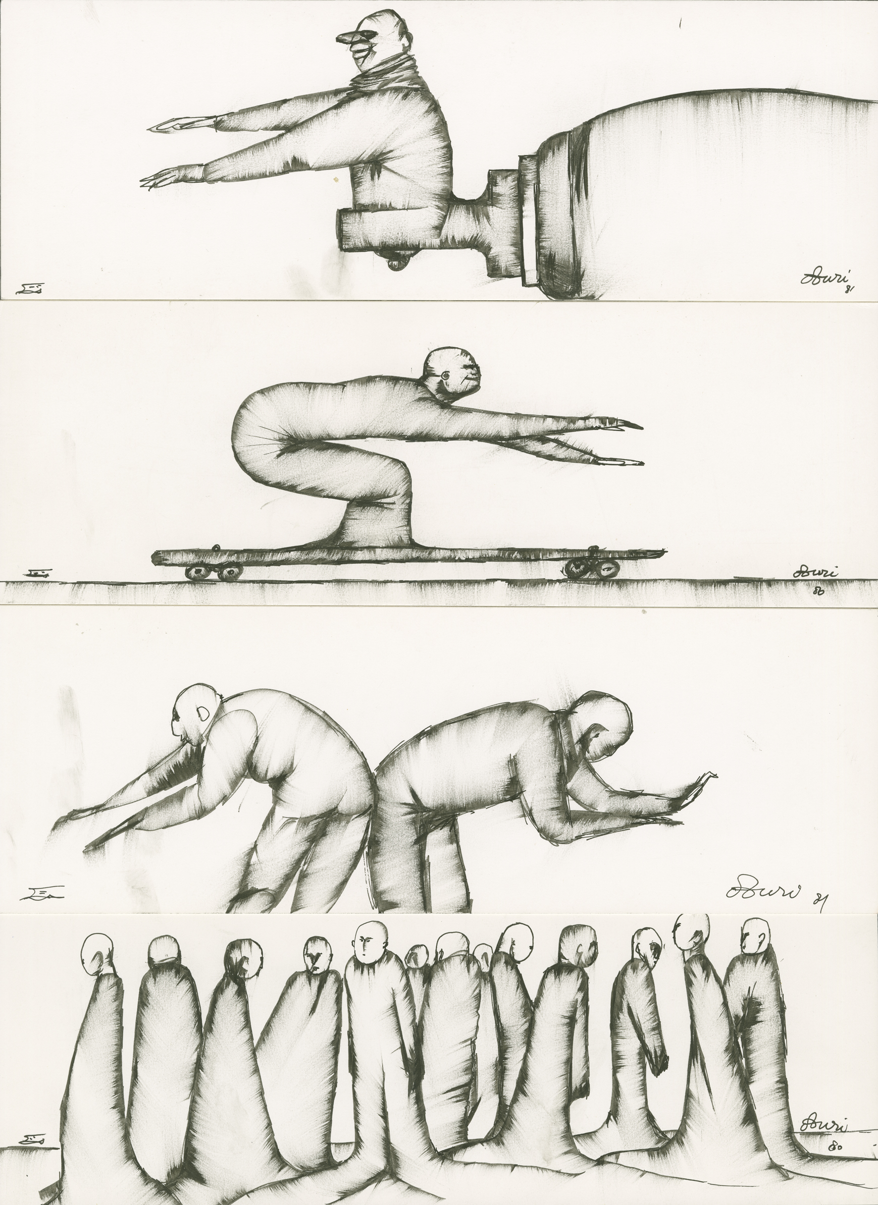 Réunion, par l'artiste, sur une page de 4 dessins horizontaux, tous datés et signés.