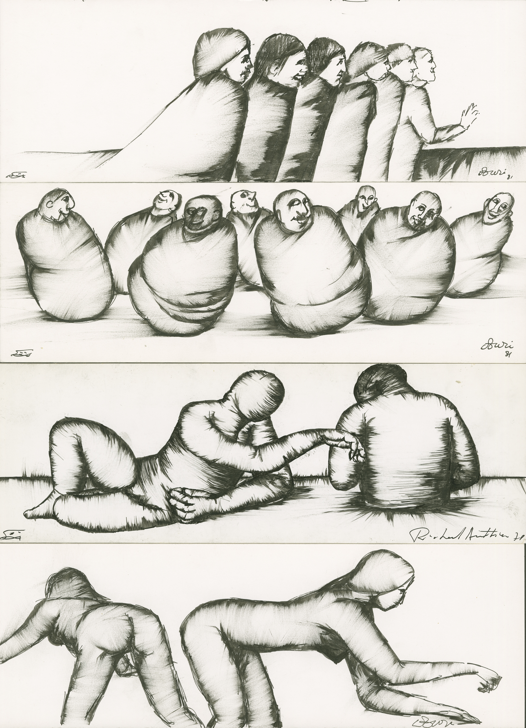 Réunion, par l'artiste, sur une page de 4 dessins horizontaux, datés et signés.
