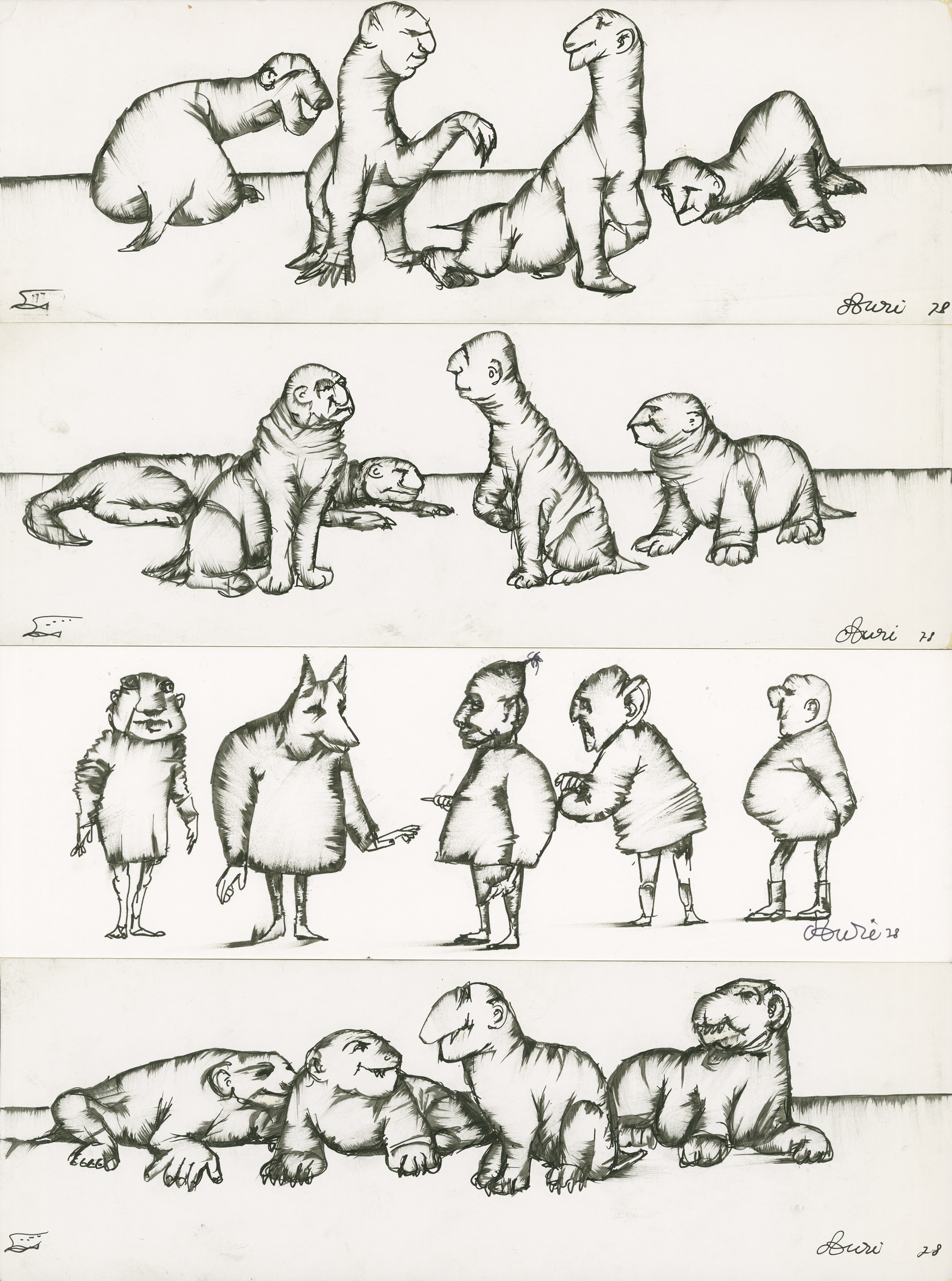 Réunion, par l'artiste, sur une page de 4 dessins horizontaux, datés et signés.
