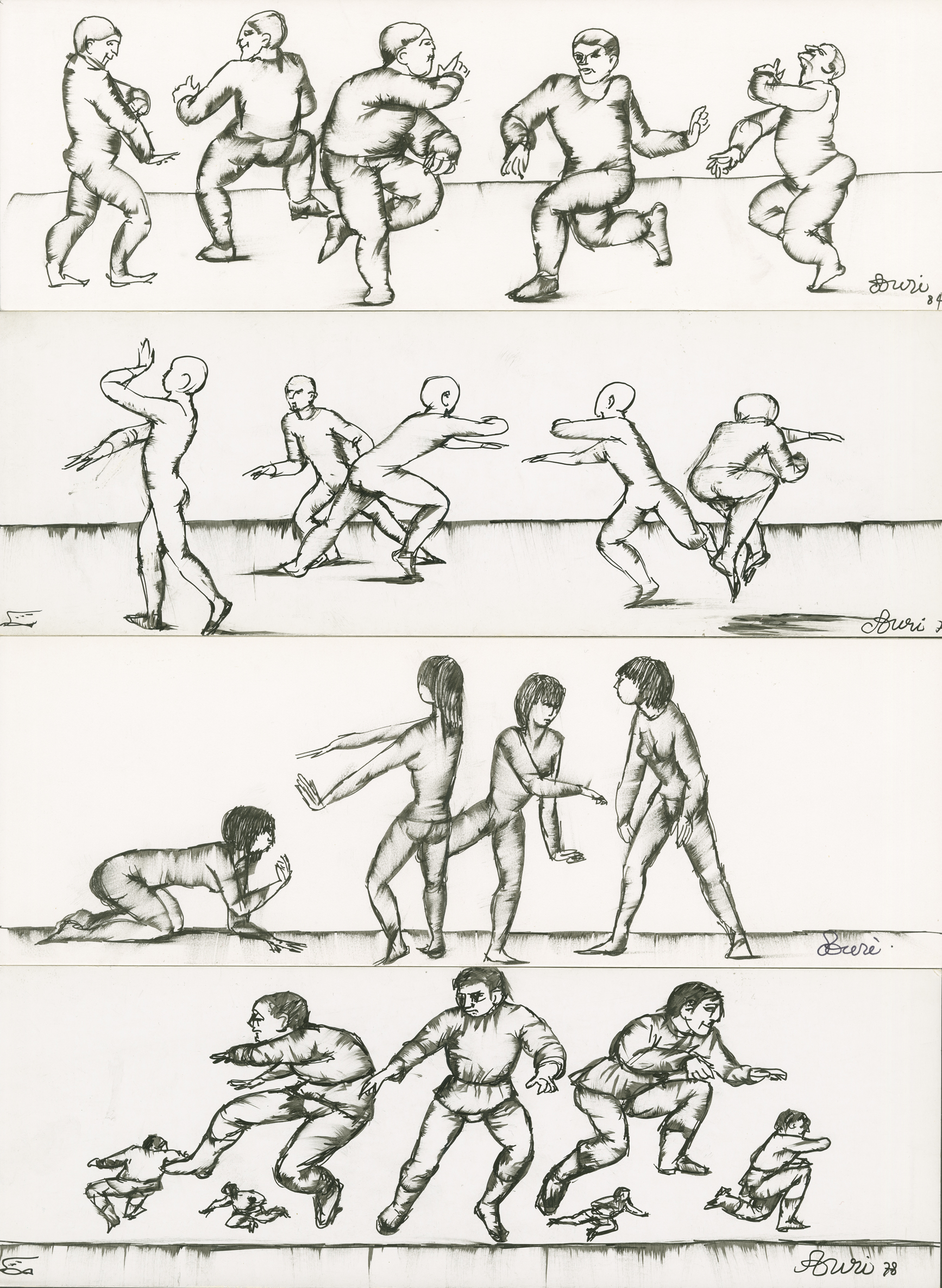 Réunion, par l'artiste, sur une page de 4 dessins horizontaux, datés et signés.