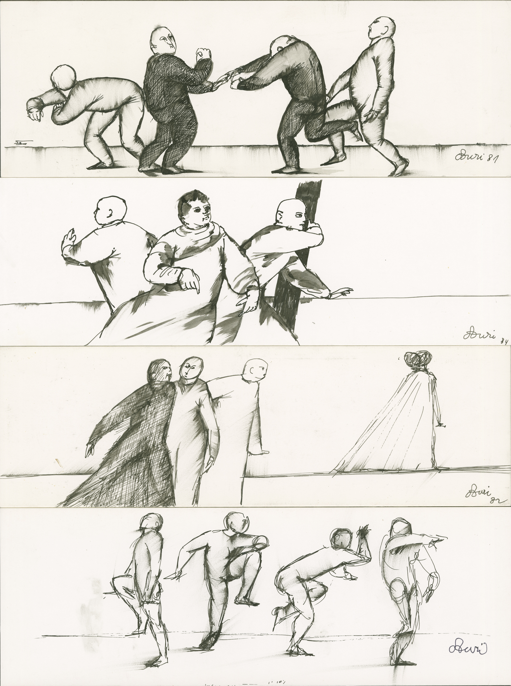 Réunion, par l'artiste, sur une page de 4 dessins horizontaux, datés et signés.