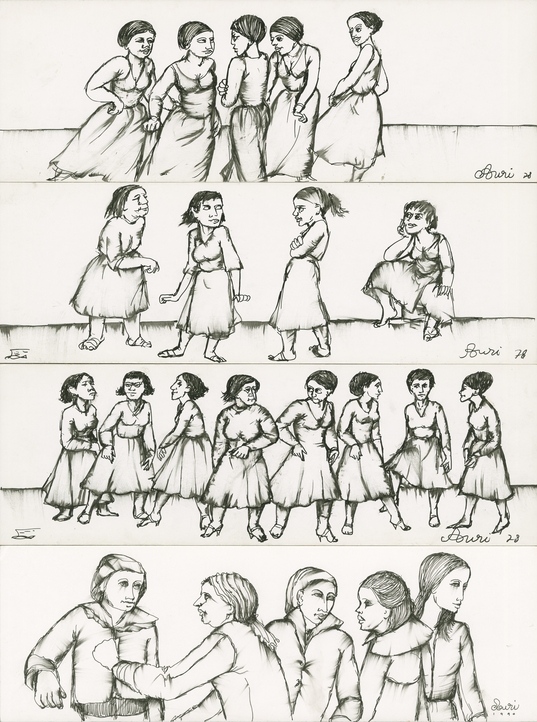 Réunion, par l'artiste, sur une page de 4 dessins horizontaux, datés et signés.