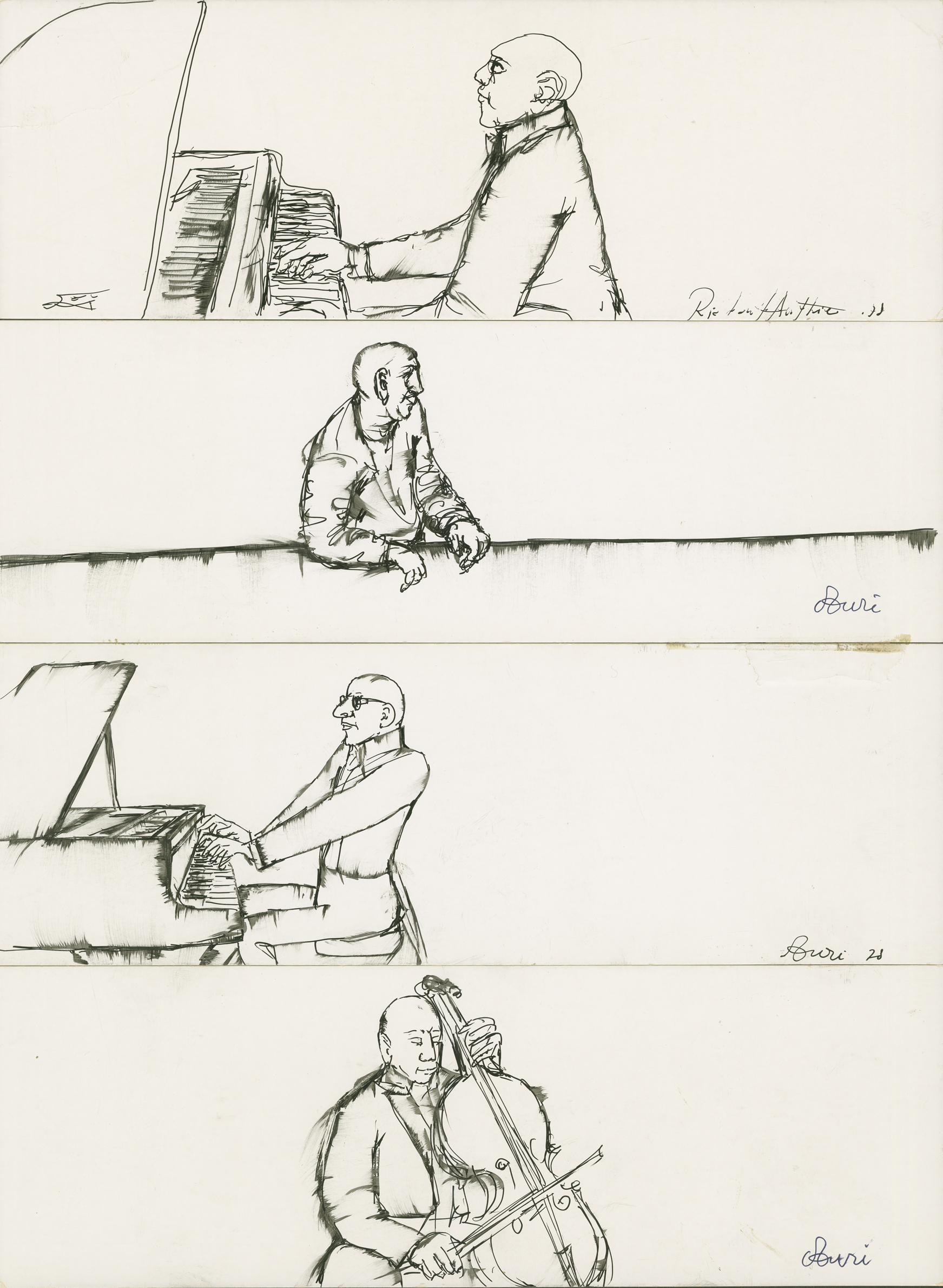 Réunion, par l'artiste, sur une page de 4 dessins horizontaux, datés et signés.