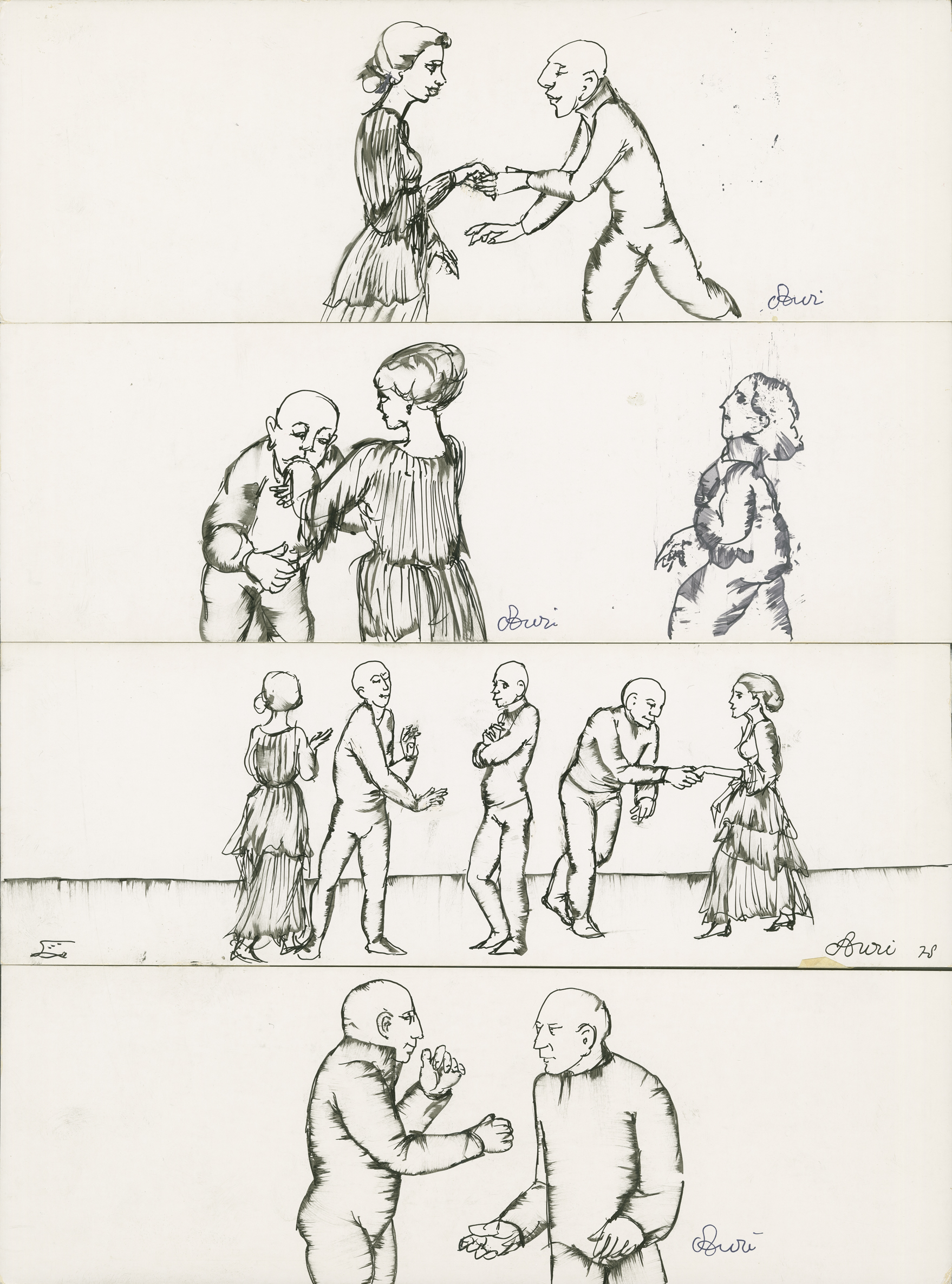 Réunion, par l'artiste, sur une page de 4 dessins horizontaux, datés et signés.