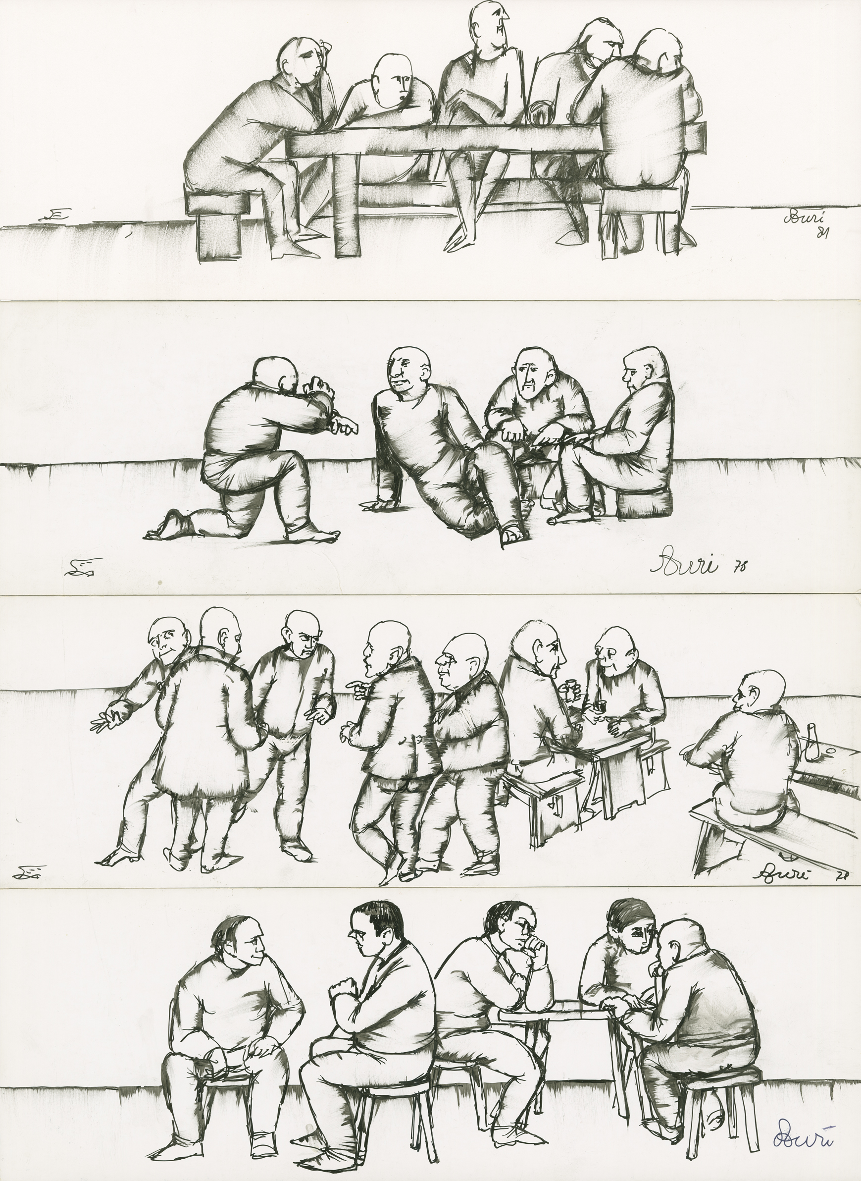 Réunion, par l'artiste, sur une page de 4 dessins horizontaux, datés et signés.