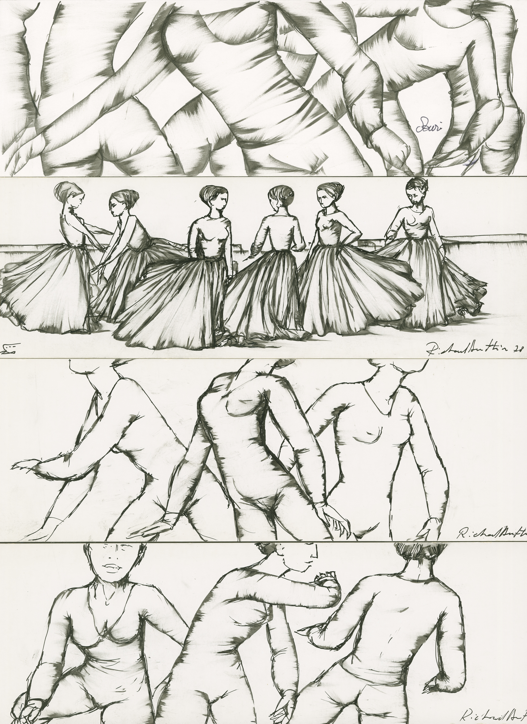 Réunion, par l'artiste, sur une page de 4 dessins horizontaux, datés et signés.
