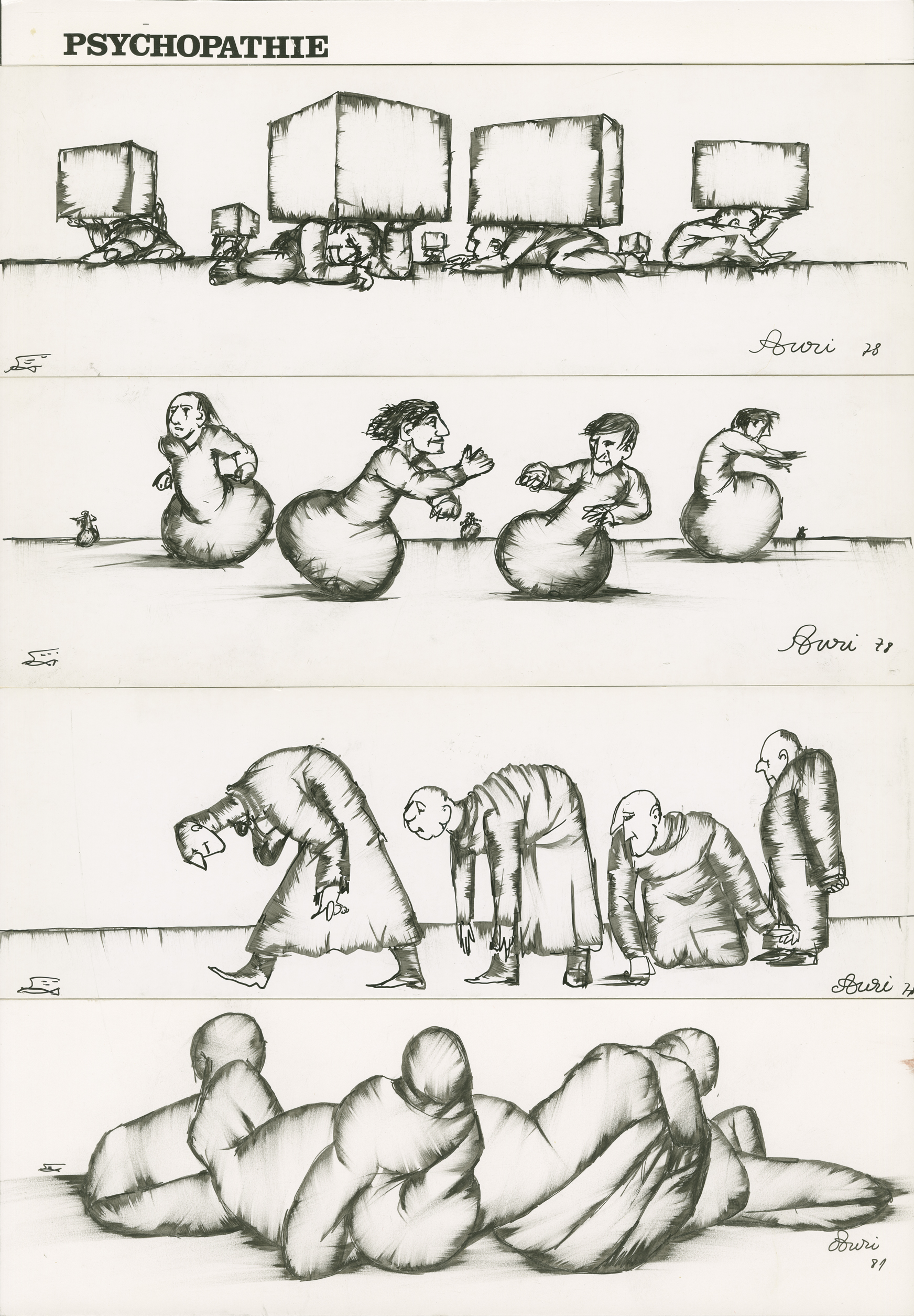 Inscription (lettres imprimées): "PSYCHOPATHE" (h/g) Date: "78" (h/d); "78" (m/d); "78" (m/d) et "81" (b/d) Signature: "Auri" (h/d); "Auri" (m/d); "Auri" (m/d) et "Auri" (b/d)