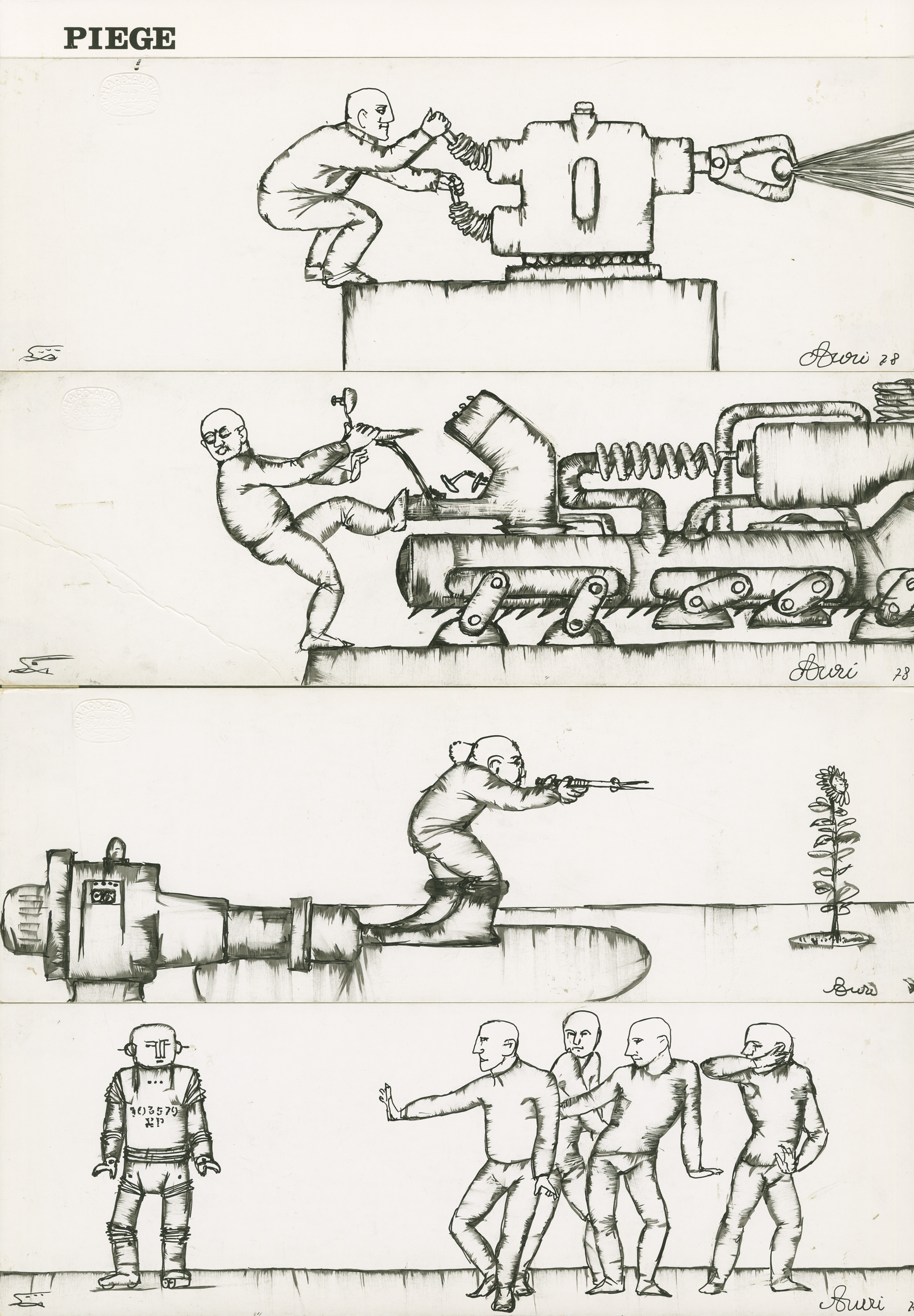 Inscription (lettres imprimées): "PIEGE" (h/g) Date: "78" (h/d); "78" (m/d); "78" (m/d) et "78" (b/d) Signature: "Auri" (h/d); "Auri" (m/d); "Auri" (m/d) et "Auri" (b/d)