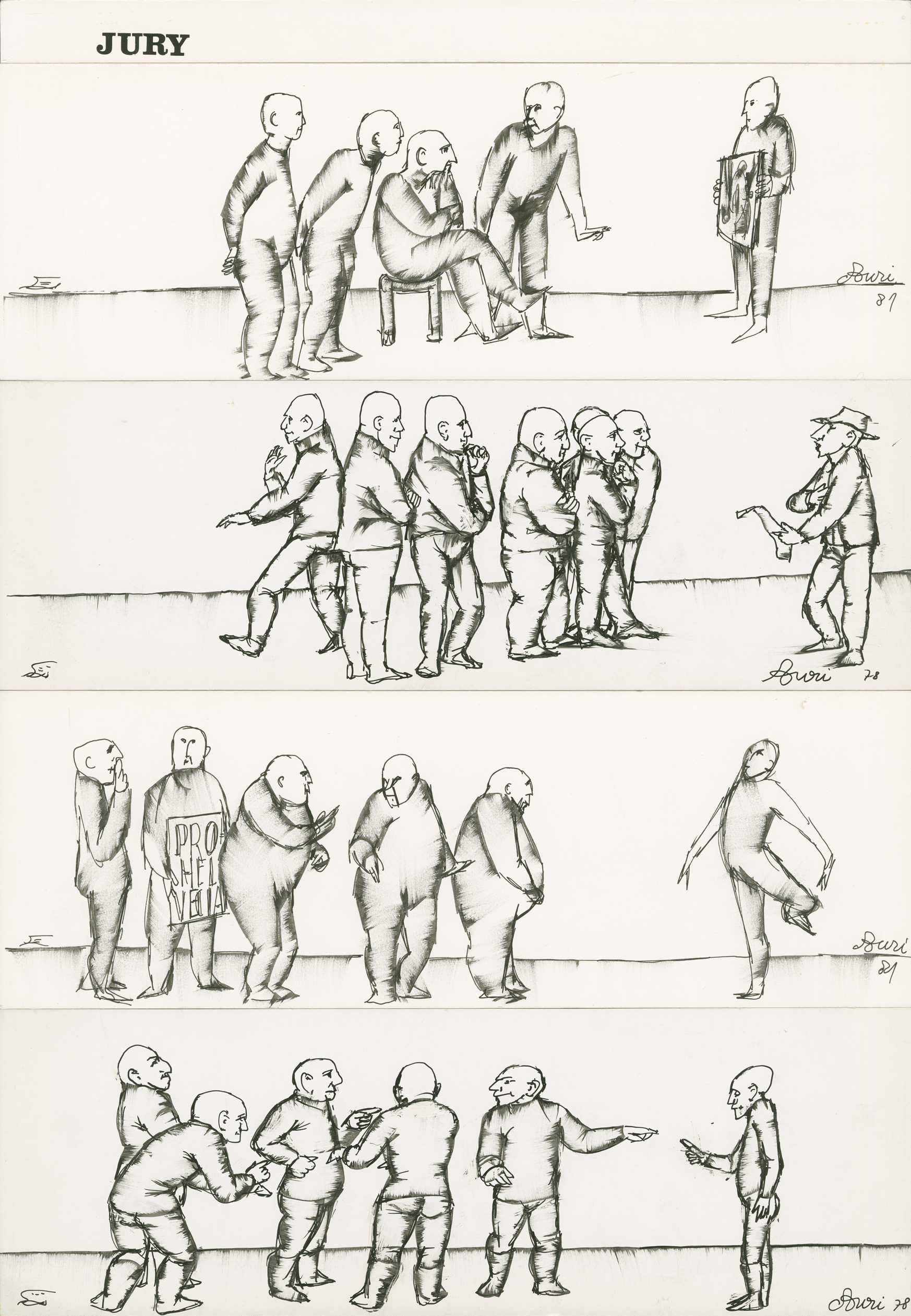 Inscription (lettres imprimées): "JURY" (h/g) Date: "81" (h/d); "78" (m/d); "81" (m/d) et "78" (b/d) Signature: "Auri" (h/d); "Auri" (m/d); "Auri" (m/d) et "Auri" (b/d)